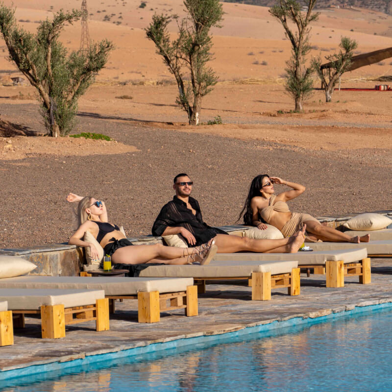Magic Camp, enjoy an unforgettable escape in a serene and enchanting setting. Relax by the pool, savor a gourmet Moroccan meal under the stars, and take part in a variety of desert activities designed for every taste.