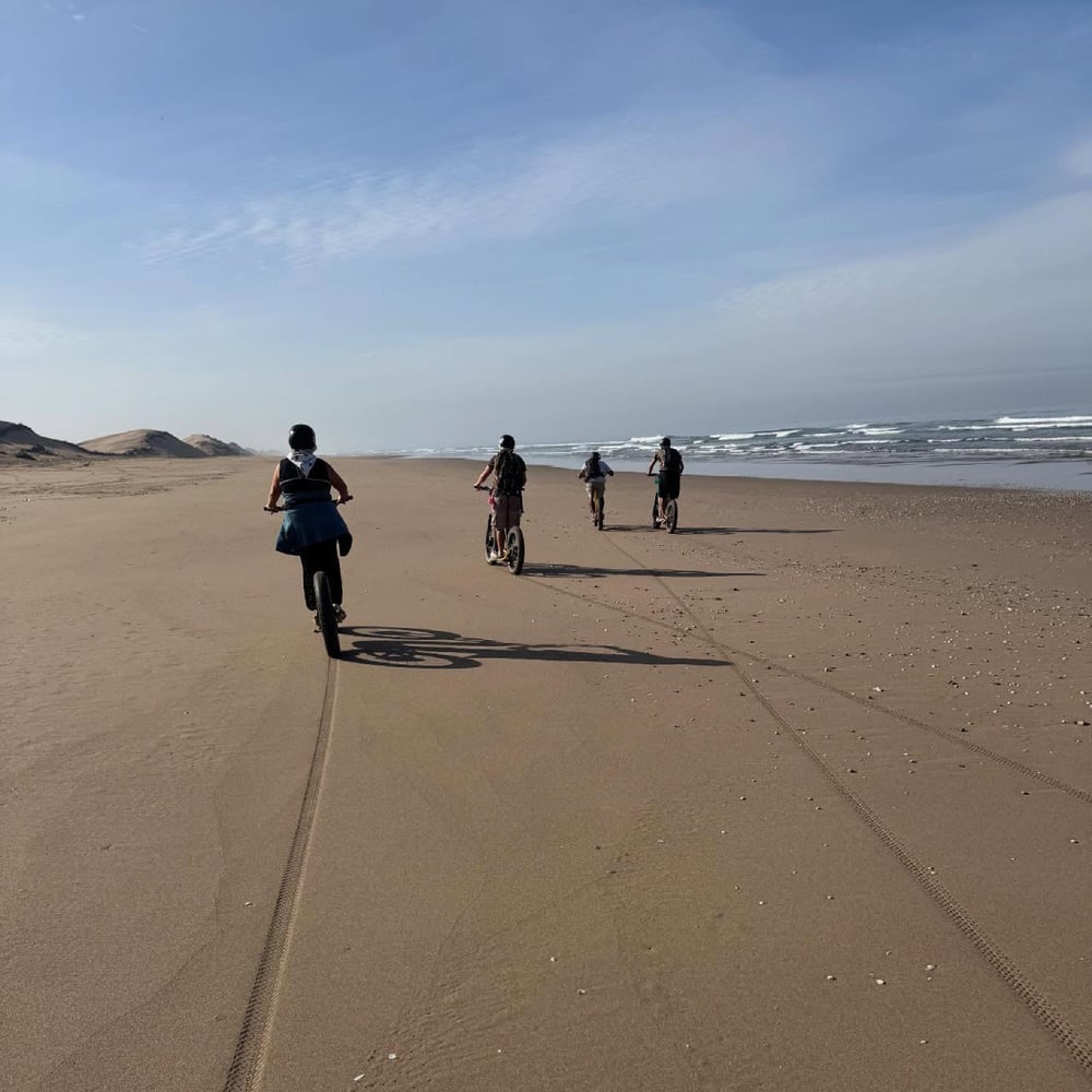 Discover one of the most beautiful natural areas near Agadir with this guided electric scooter or fat bike excursion in Souss Massa National Park. This outdoor experience takes you through golden sand dunes, eucalyptus forests, and argan tree landscapes, offering a unique mix of nature, adventure, and wildlife discovery.