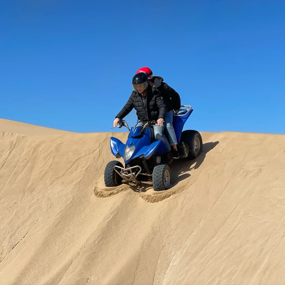 Explore quad rides and tours in Essaouira with our varied selection of routes suitable for all levels. Discover Essaouira and its surroundings uniquely on a quad, venturing off the beaten path. Exciting adventures await you from sunrise to sunset in an exceptional setting. Your quad excursion will take you through thrilling dunes and deserted beaches, as well as along winding tracks through the forest, where you will discover the rich local fauna and flora. We do not mix groups, ensuring a personalized experience with your guide who can adapt the quad ride according to your level and preferences.