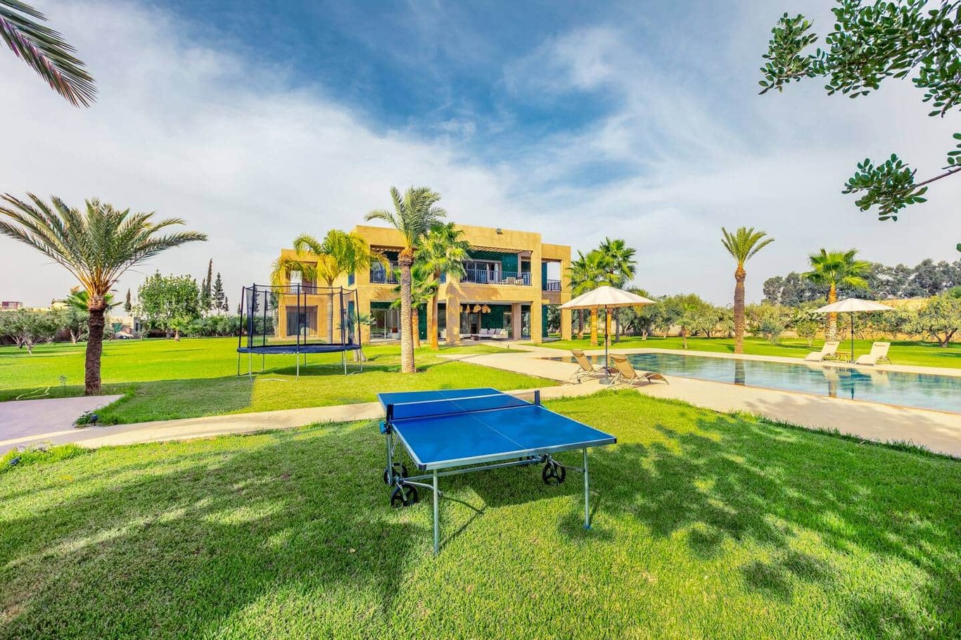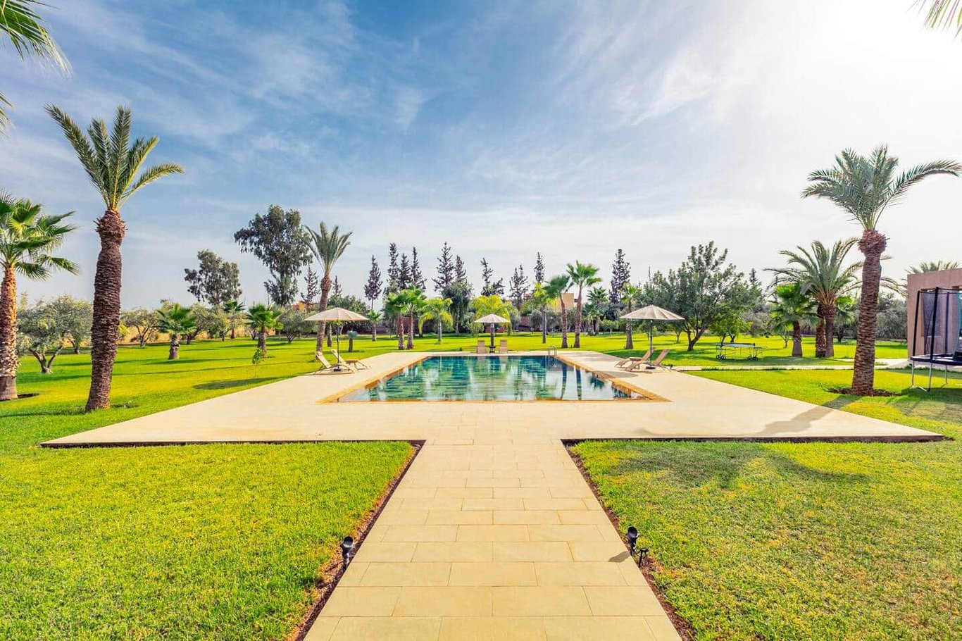 Villa Noura is an exceptional private villa set on a vast 11,000 m² estate with panoramic views of the Atlas Mountains, located on the Ourika road, approximately 25 minutes from the center of Marrakech. Designed to combine luxury, well-being, and entertainment, the villa accommodates up to 10 guests and is ideal for families or groups of friends seeking space, comfort, and serenity.