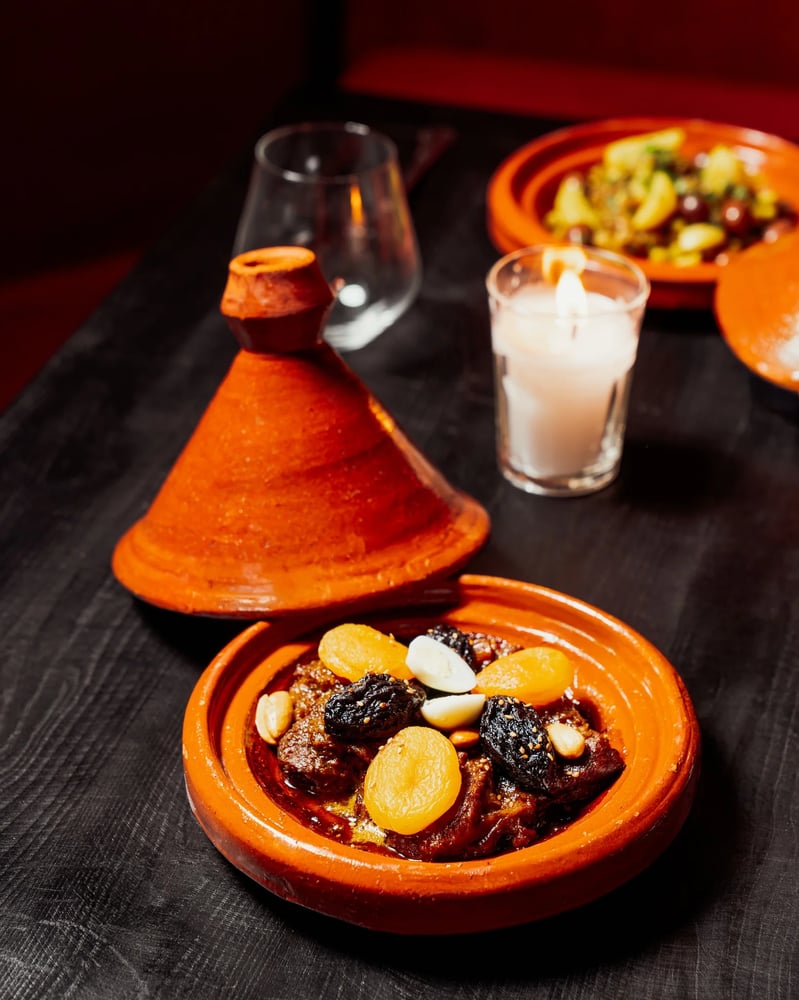 The menu features traditional Moroccan specialties, including couscous, tajines, and pastilla, prepared with fresh ingredients and carefully selected spices.