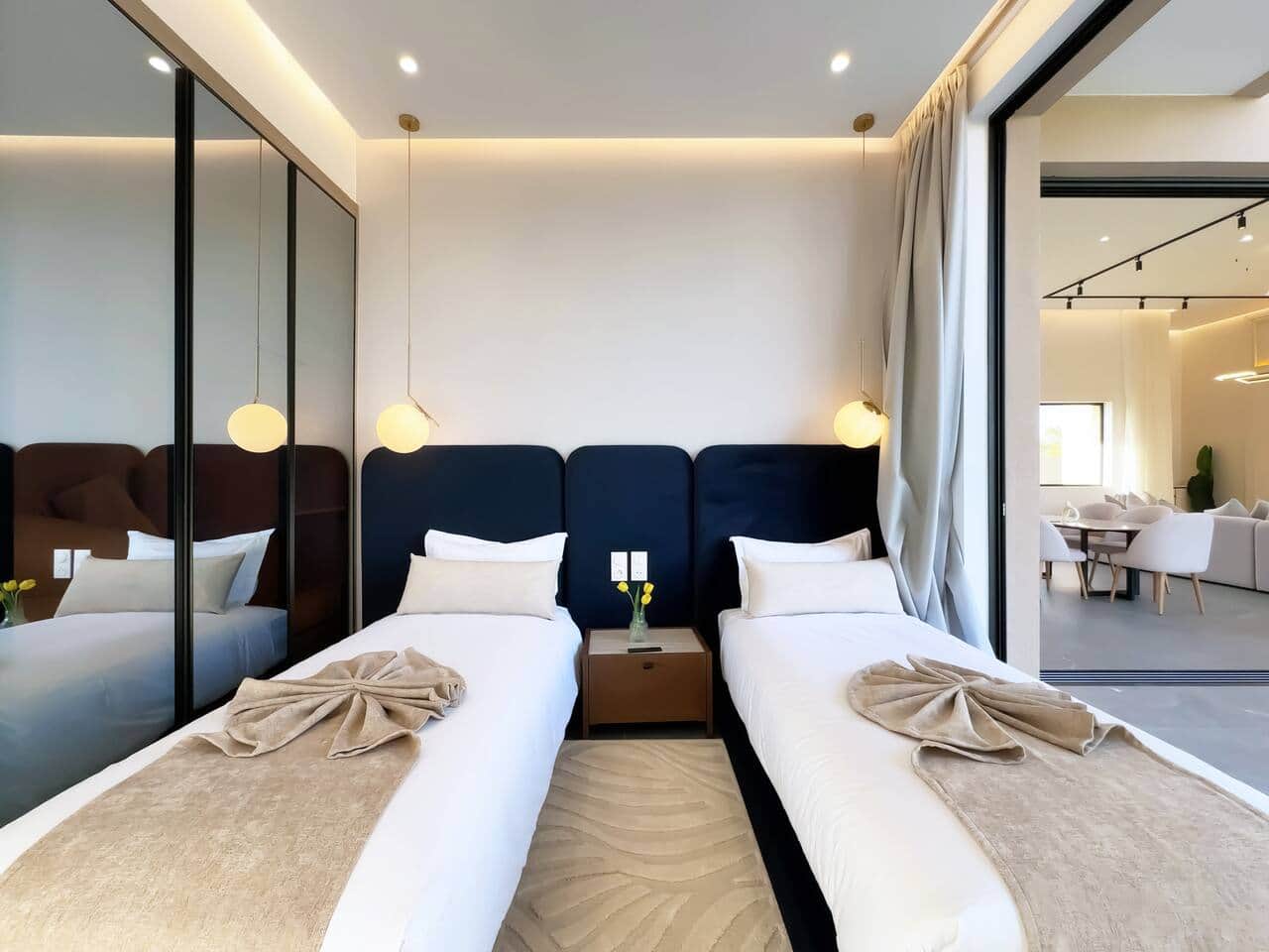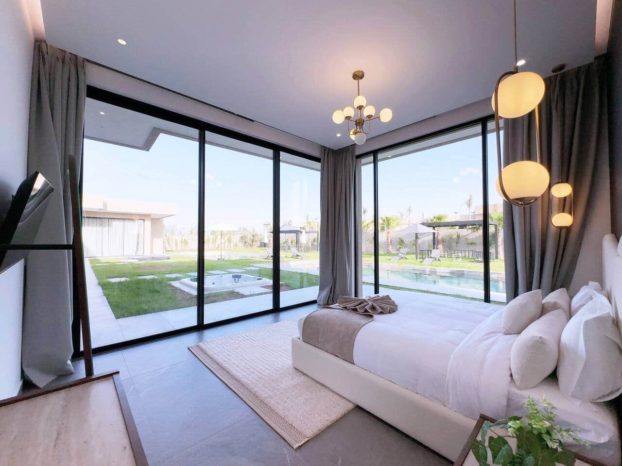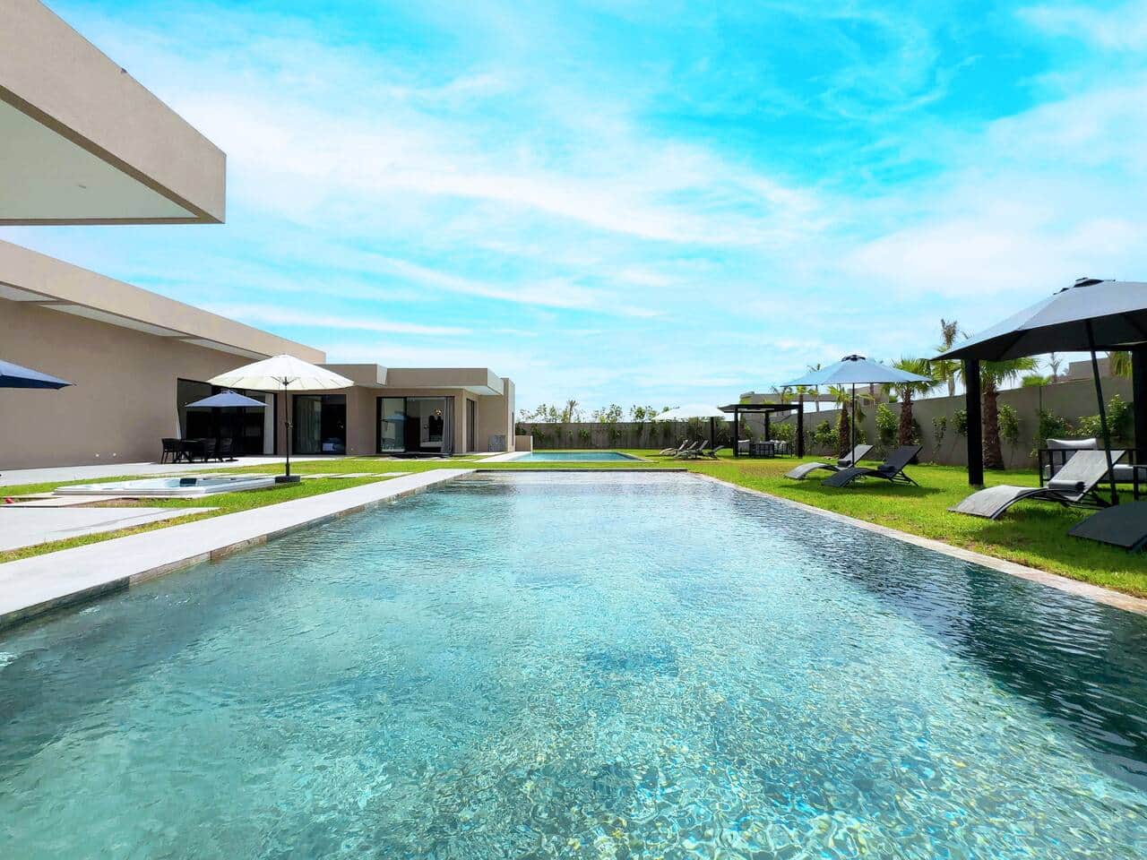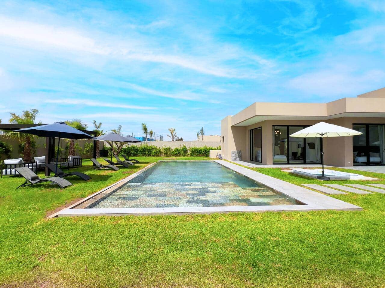 À l’extérieur, l’expérience devient encore plus agréable : 2 piscines privées, un jacuzzi extérieur, une pergola ombragée, un jardin privé, des transats et un espace barbecue pour des journées détente et des soirées inoubliables.